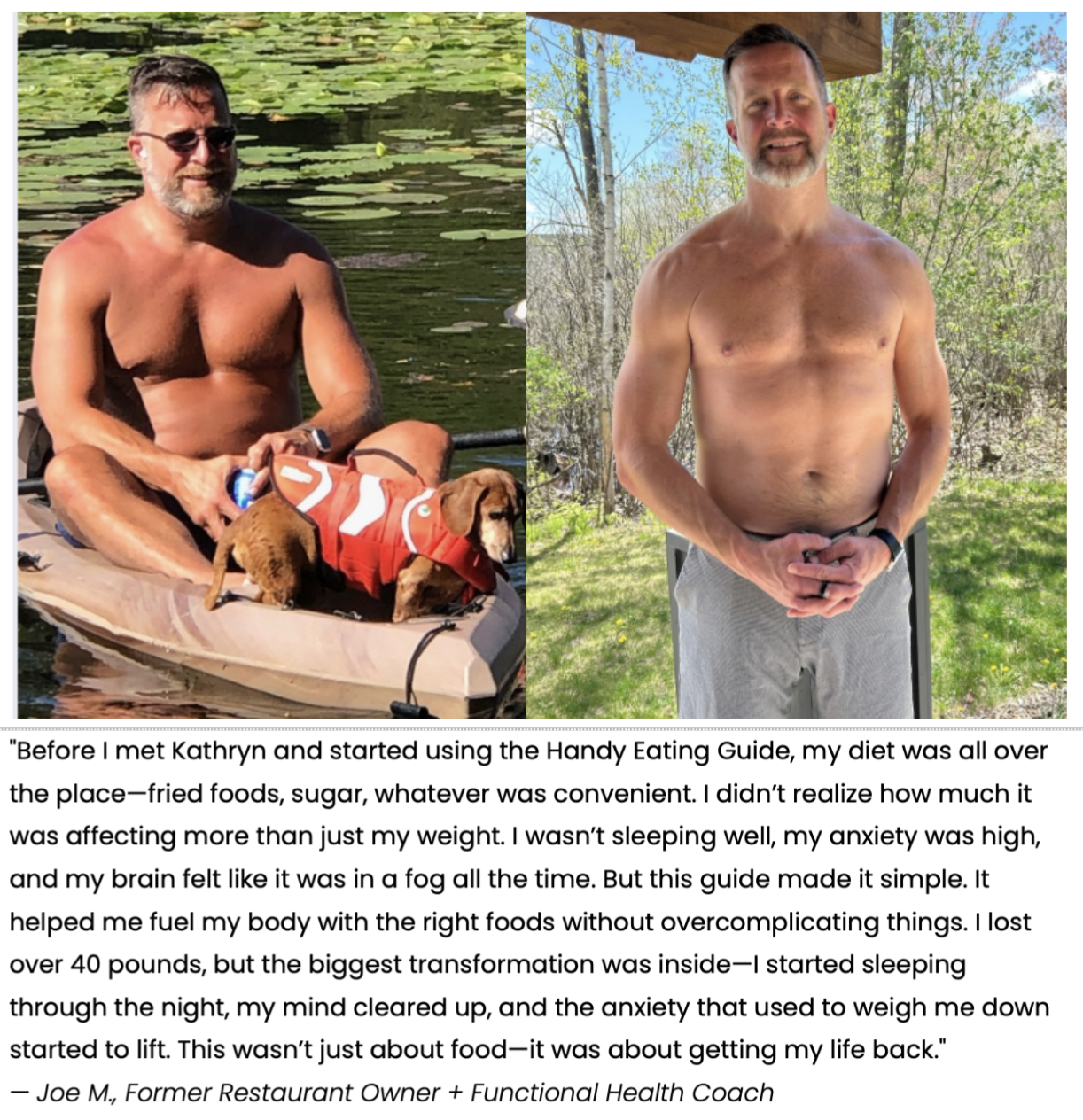 Your done-for-you roadmap to reduce inflammation, heal your gut, and restore energy one meal at a time. Includes food lists, portion visuals, and clean eating swaps—all rooted in functional medicine principles.