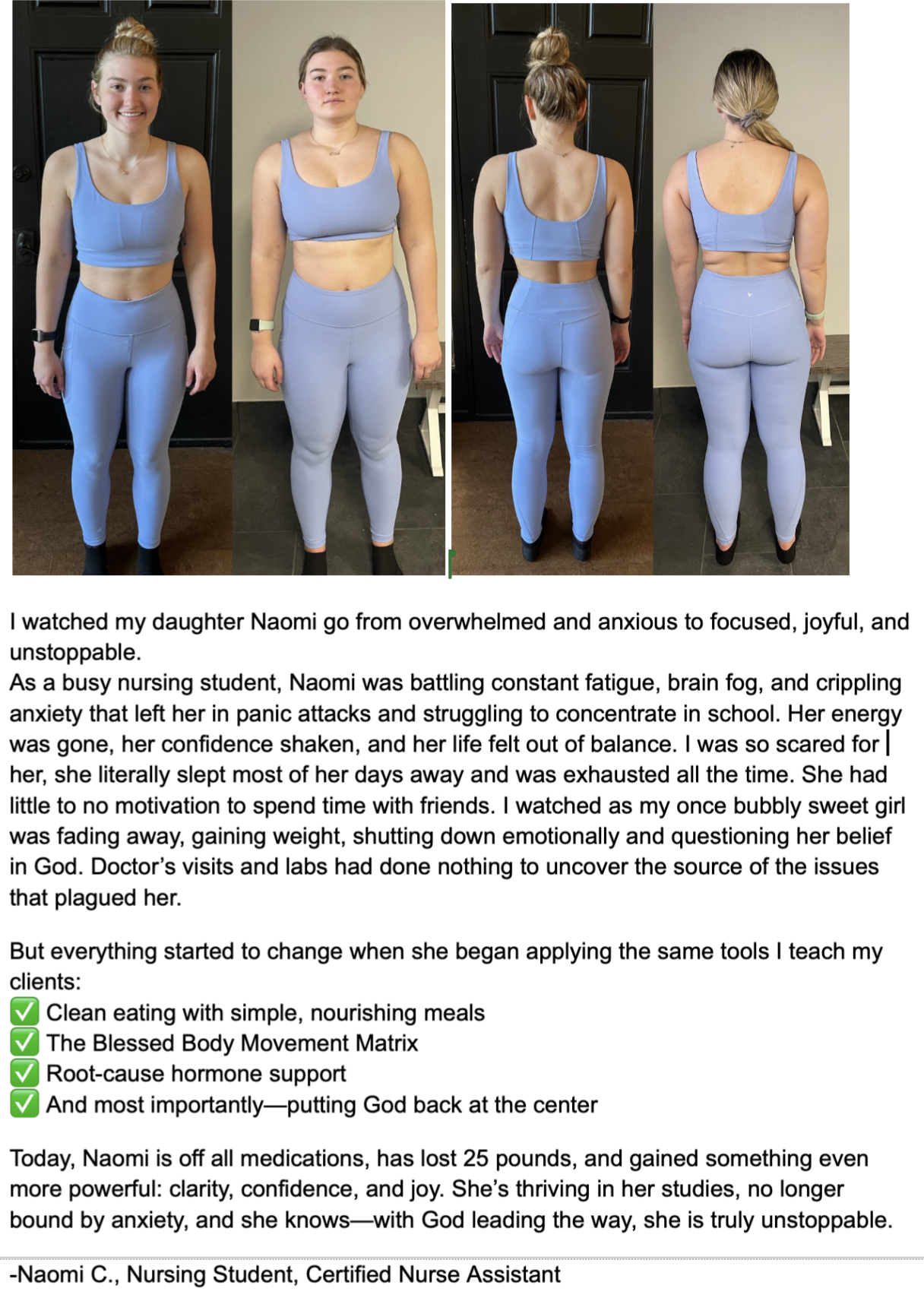 No. The Blessed Body is a whole-person healing system rooted in faith and functional medicine. Weight loss may happen—but the real goal is restoring energy, gut health, mental clarity, and spiritual alignment.